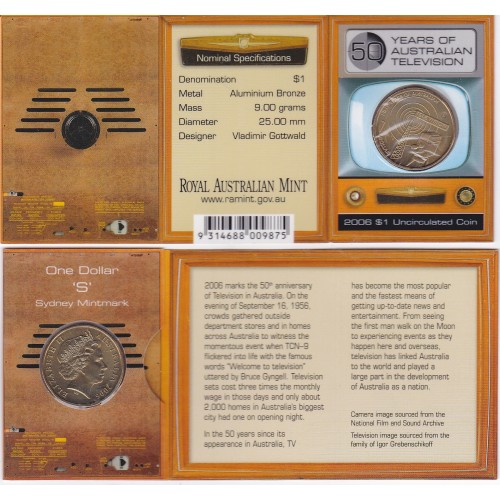2006 $1 50 Years of Television in Australia Mintmark "S"