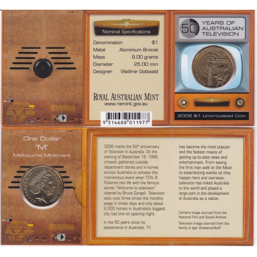 2006 $1 50 Years of Television in Australia Mintmark "M"