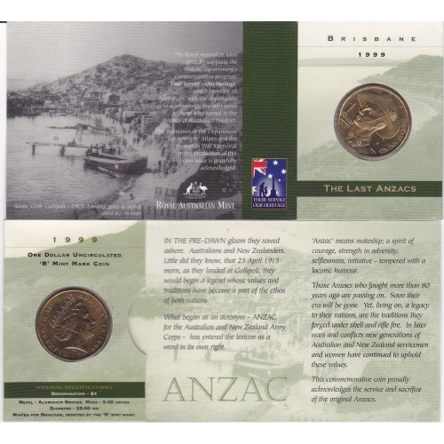1999 $1 The Last ANZAC Mint Mark "B"