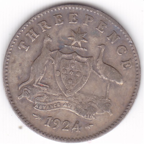 1924 Commonwealth King George V Threepence 92.5% Silver Coin Very Good