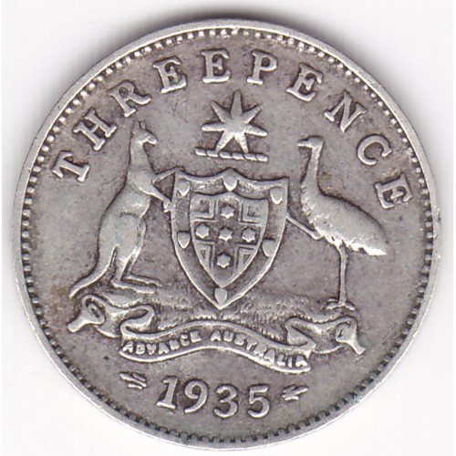 1935 Commonwealth King George V Threepence 92.5% Silver Coin Very Fine