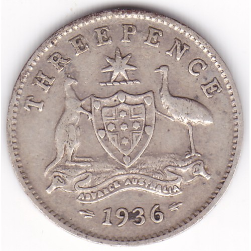 1936 Commonwealth King George V Threepence 92.5% Silver Coin Very Fine