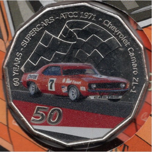 2020 PNC 50c 60 Years of Supercars 1971 Chevrolet Camaro Stamp and Coin Cover