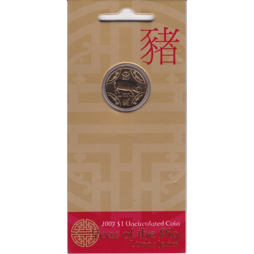 2007 $1 Lunar Series - Year of the Pig Carded Coin