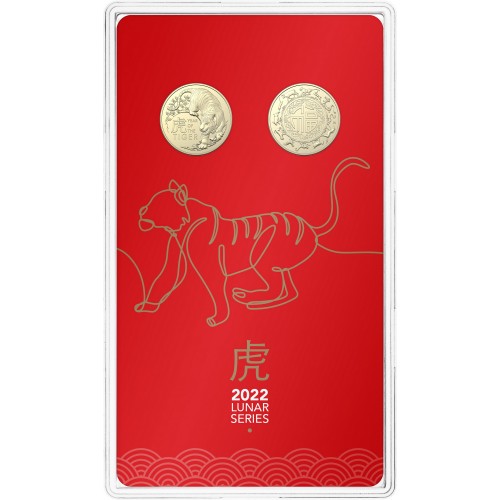 2022 $1 Lunar Series - Year of the Tiger 2 Coin Set Carded/Coins