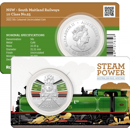 2022 50¢ Australian Steam Power Trains - NSW South Maitland Railways No. 25 Coin/Card Uncirculated