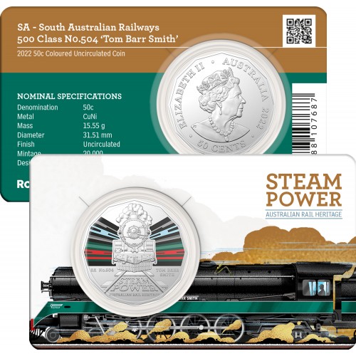 2022 50¢ Australian Steam Power Trains - SA Railways No. 504 ‘Tom Barr Smith’ Coin/Card Uncirculated