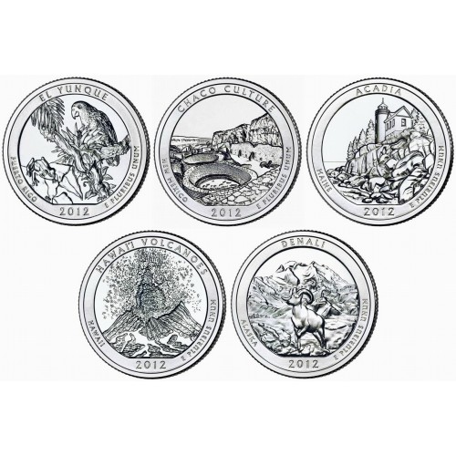 2012 US National Park Quarters Five Coins Uncirculated Straight from the US Mint