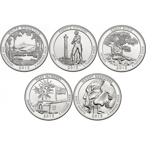Five 2013 Different US National Park Quarters Brilliant Uncirculated from the US Mint