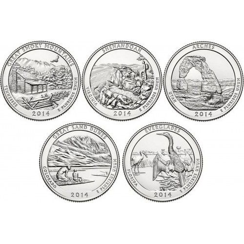 2014 US National Park Quarters Five Coins Uncirculated Straight from the US Mint