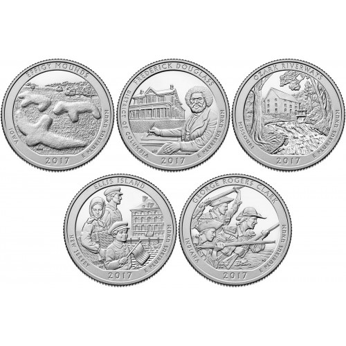 • 2017 US National Park Quarters Five Coins Uncirculated Straight from the US Mint