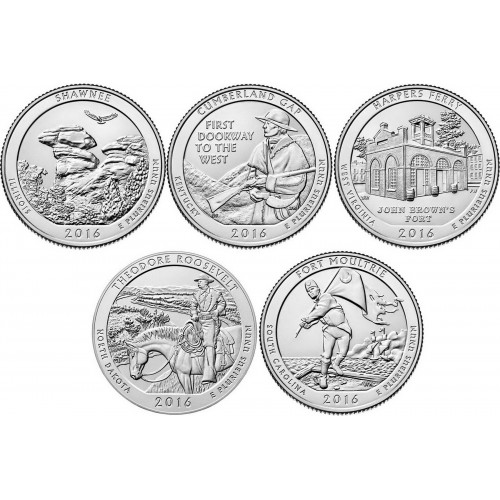 2016 US Beautiful Quarters Five Coins Uncirculated Straight from the US Mint